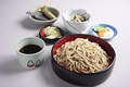 古い民家を移築・復元した曲がり屋です。高い天井、太い梁、開放感あふれる板座の空間で、自慢の手打ちそばやつきたて餅、城下町の郷土料理をこころゆくまでご賞味下さい。