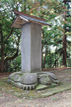 神式のお墓は、亀の形をした石、亀形石を台座とした碑石(ひせき)が前面にあります。亀石は、(きふ)ともいわれ、中国の空想上の動物で、竜の子を表し、死者の霊を守り、頭はすべて初代正之が眠る猪苗代町の方向、北を向いていると言われています。