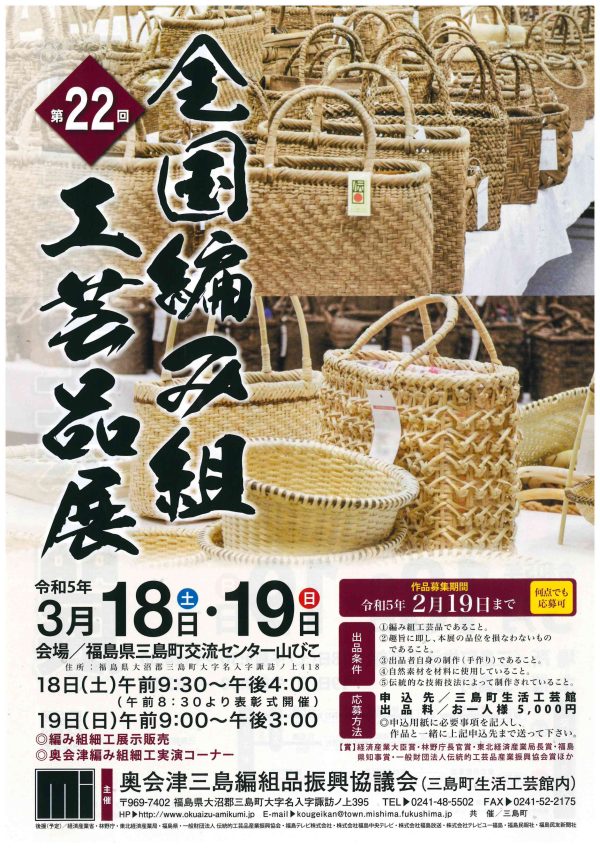 三島町 全国編み組工芸品展 3月18日(土9)・19日(日)開催