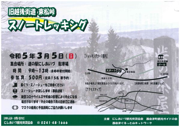 西会津町 旧越後街道 束松峠 スノートレッキング